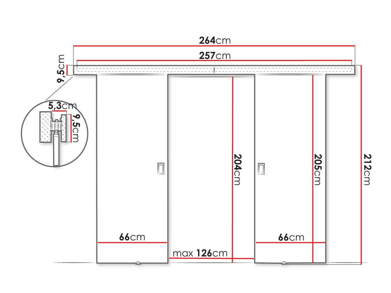 Dimenzije drsnega mehanizma vrat: