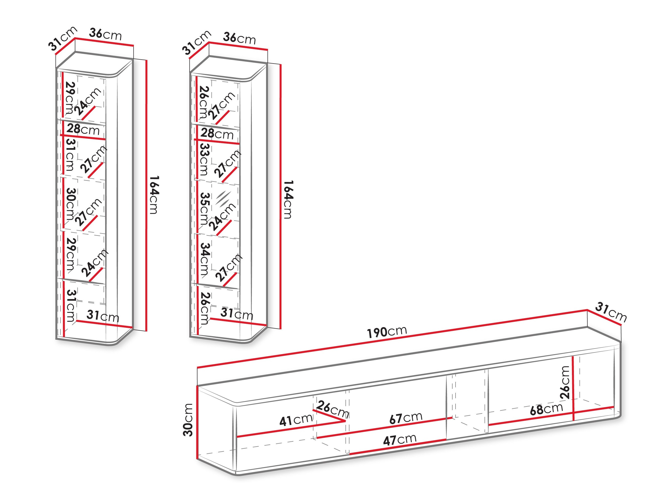 30 x 190 x 31 cm