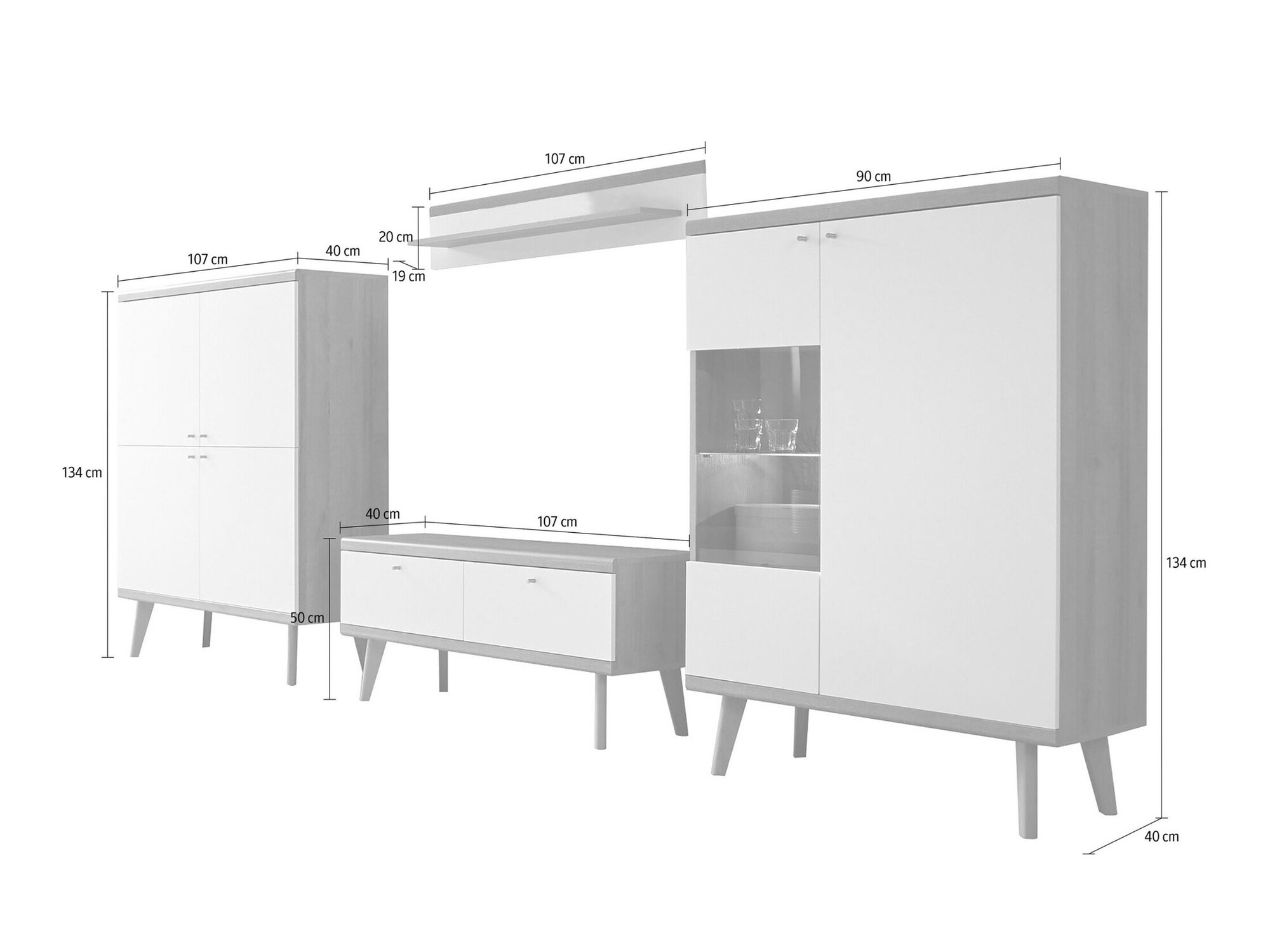 134 x 107 x 40; 134 x 90 x 40 cm