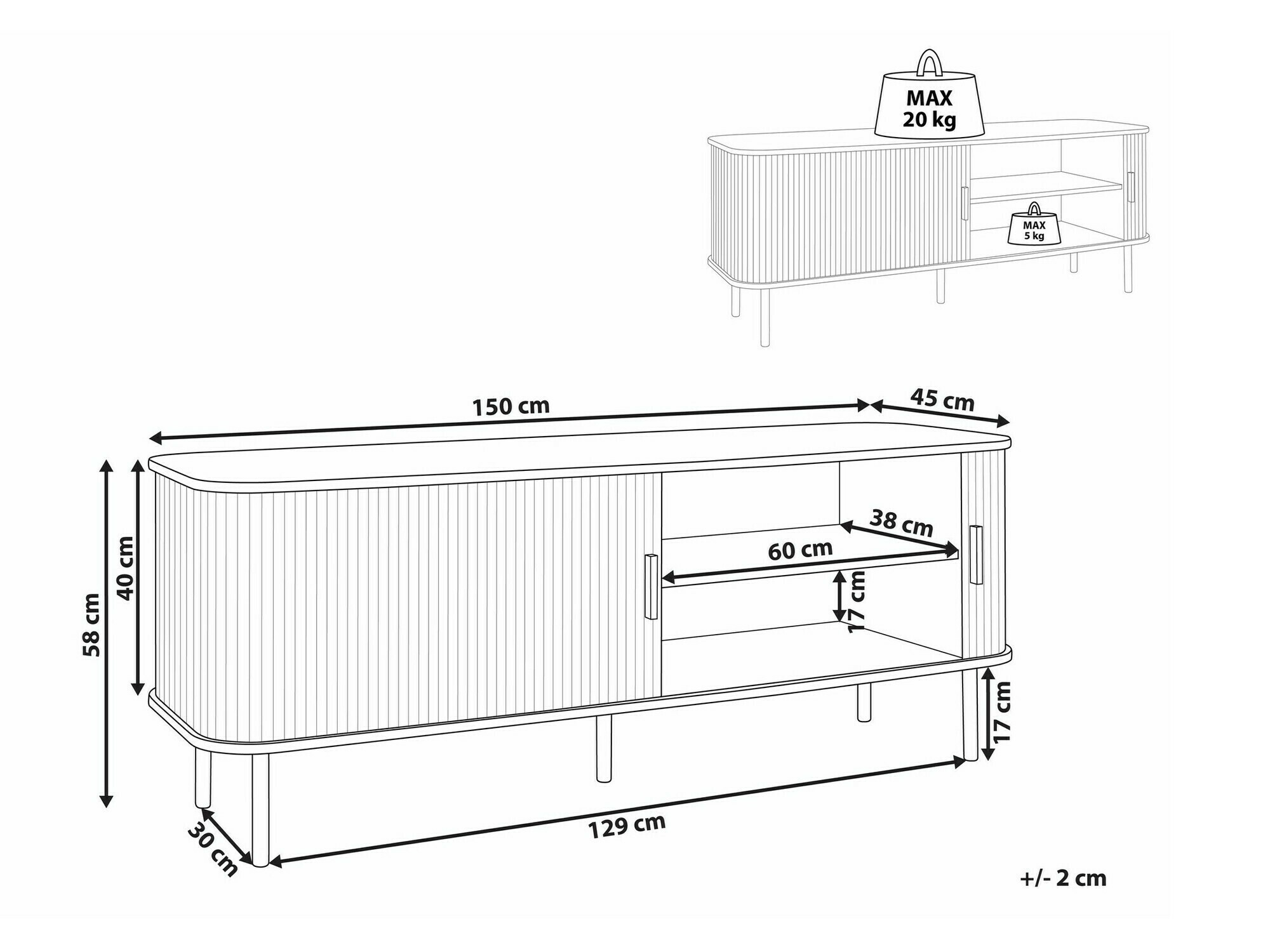 58 x 150 x 45 cm
