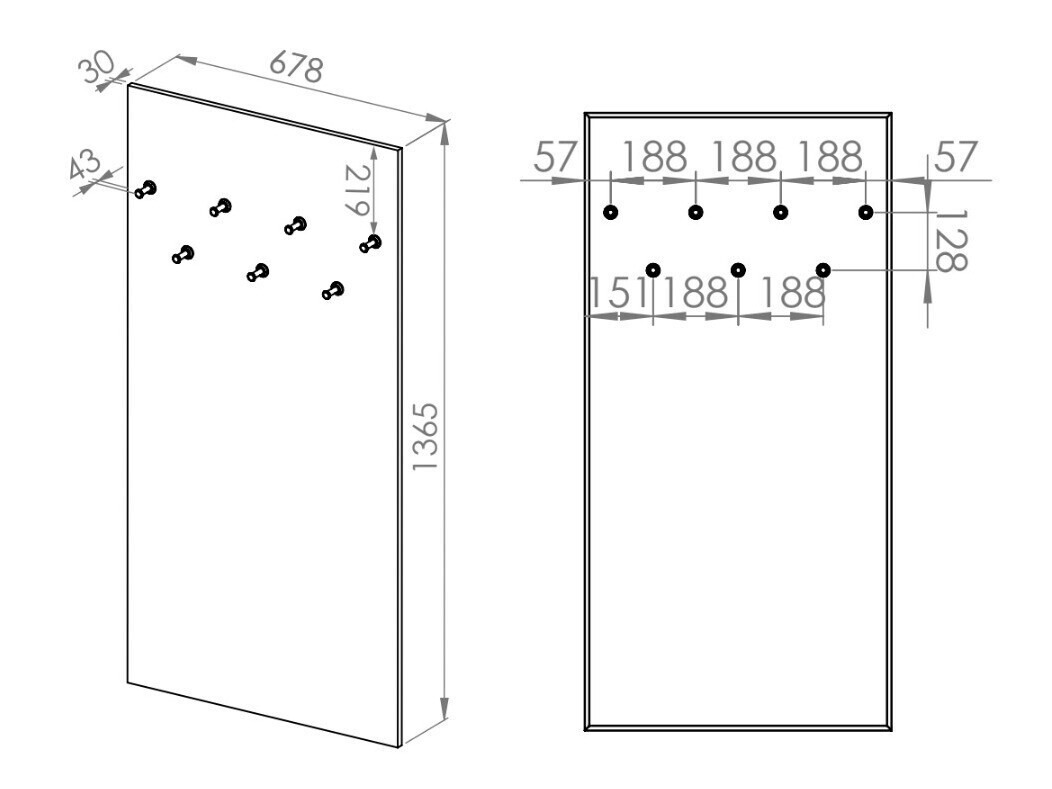 136.5 x 33.9 x 6; 136.5 x 67.8 x 6 cm