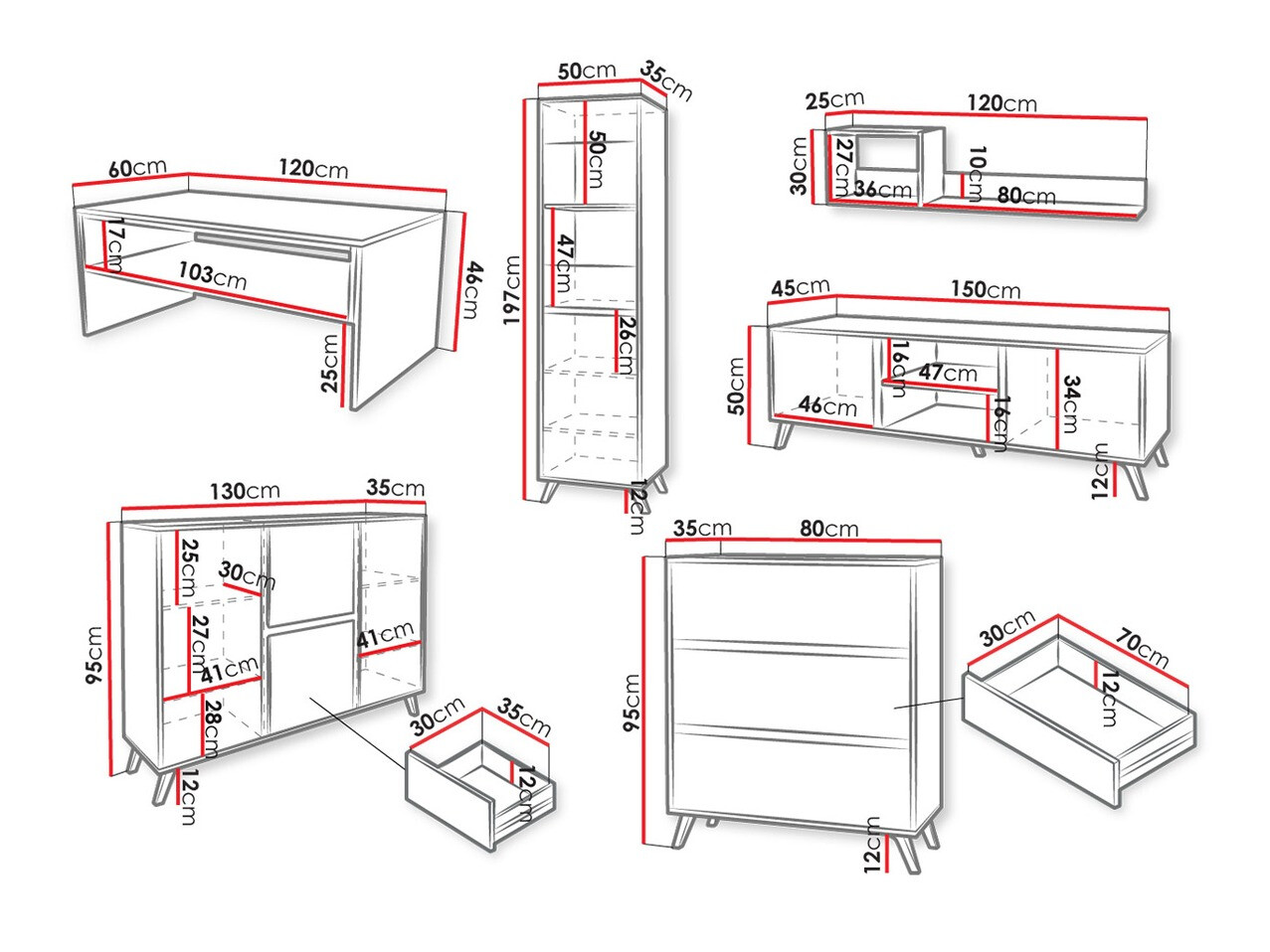 95 x 130 x 35; 95 x 80 x 35 cm