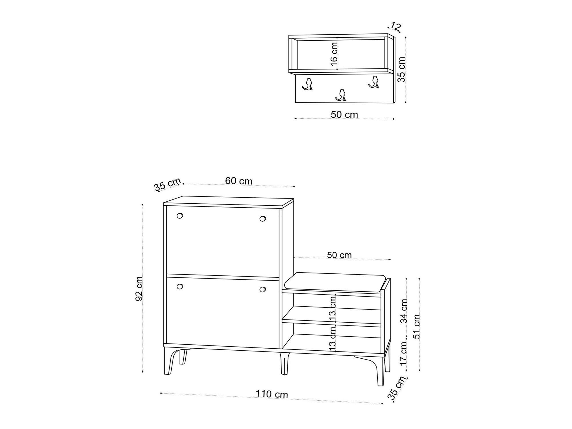 Dimenzije omarice za čevlje:
