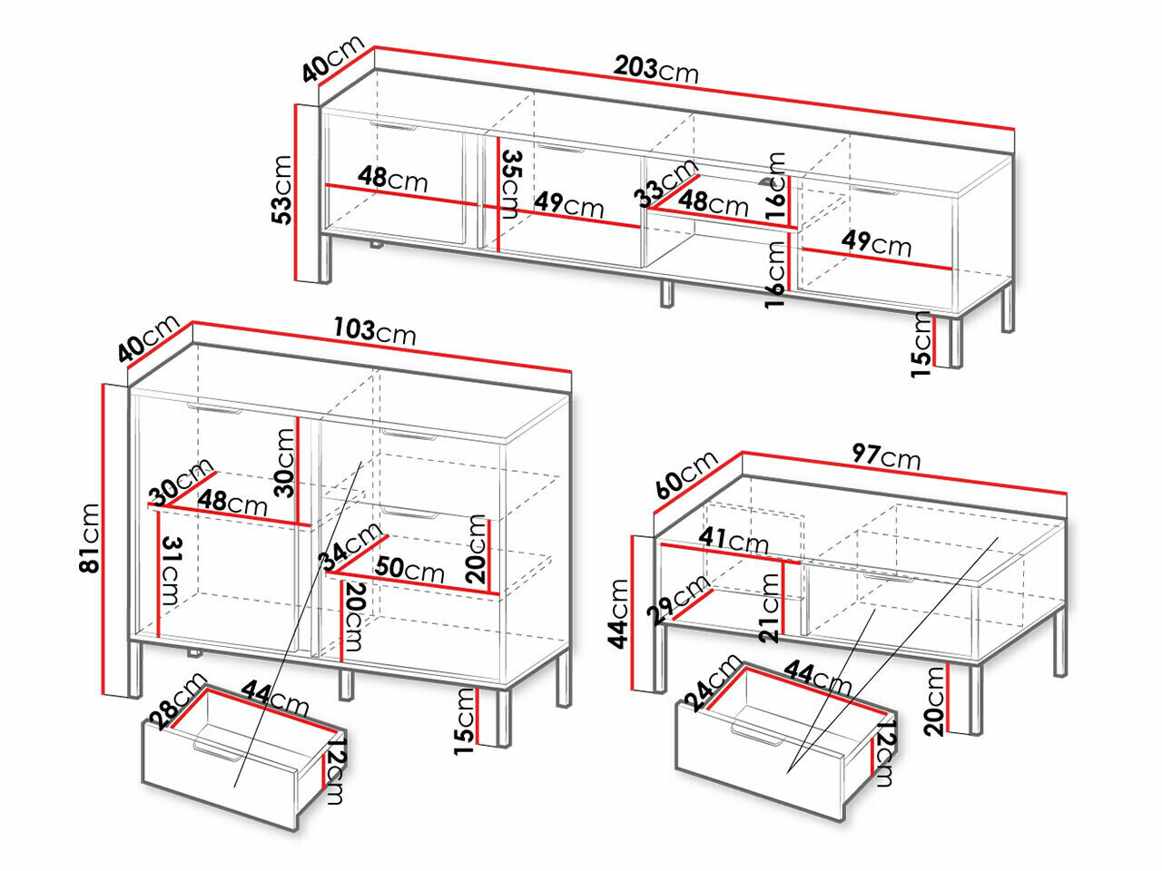 53 x 203 x 40 cm