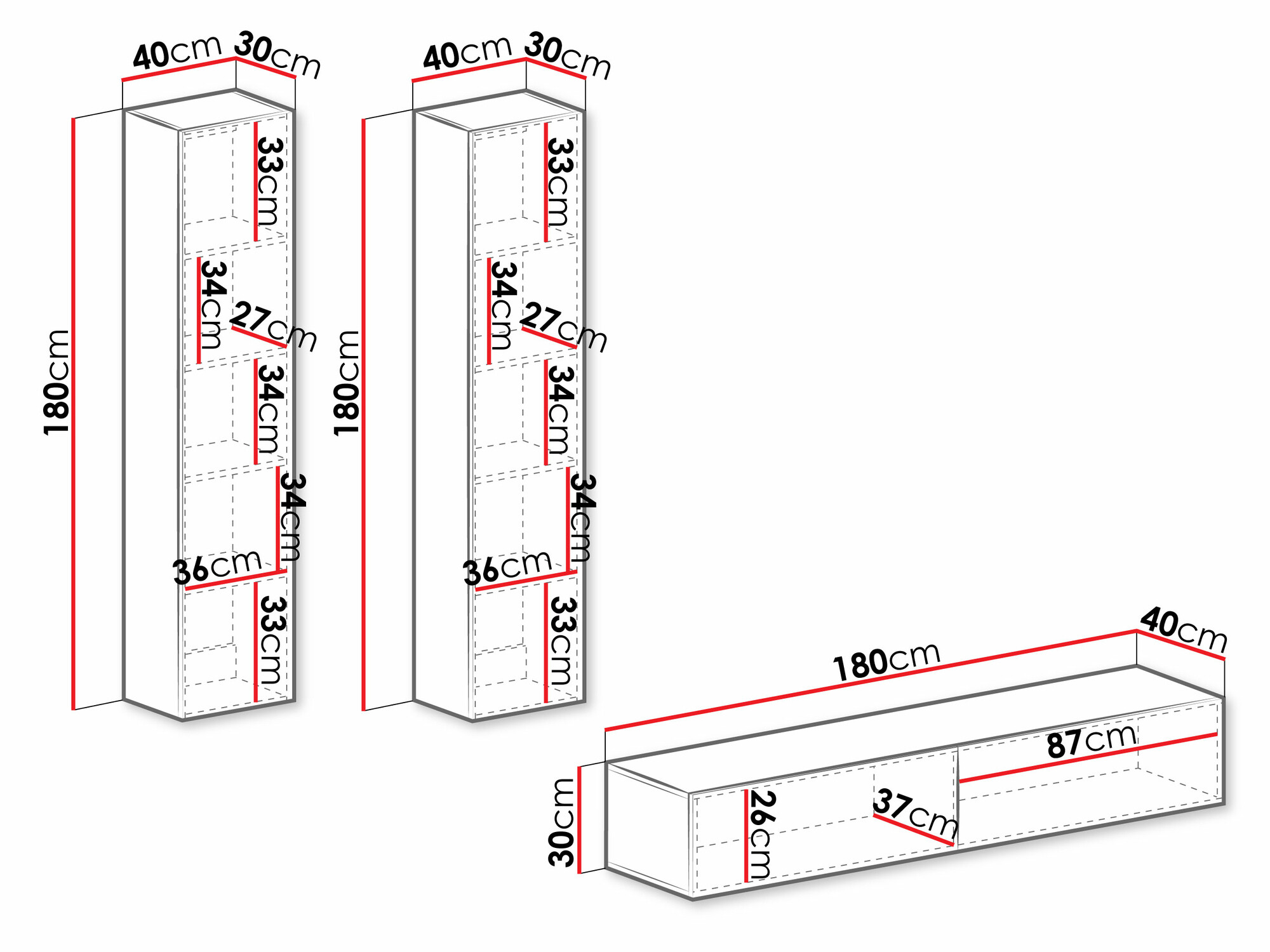 30 x 180 x 40 cm