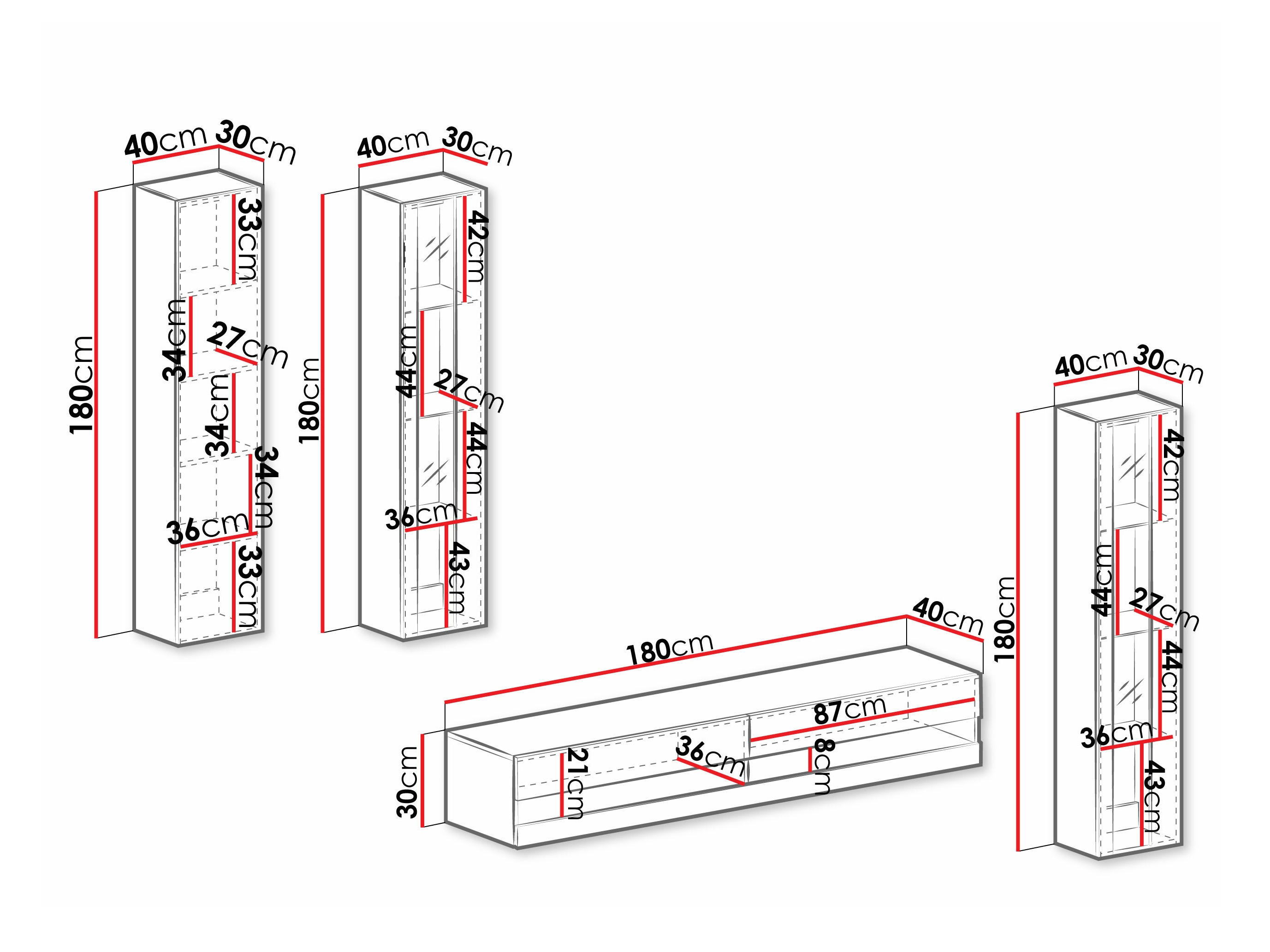 30 x 180 x 40 cm