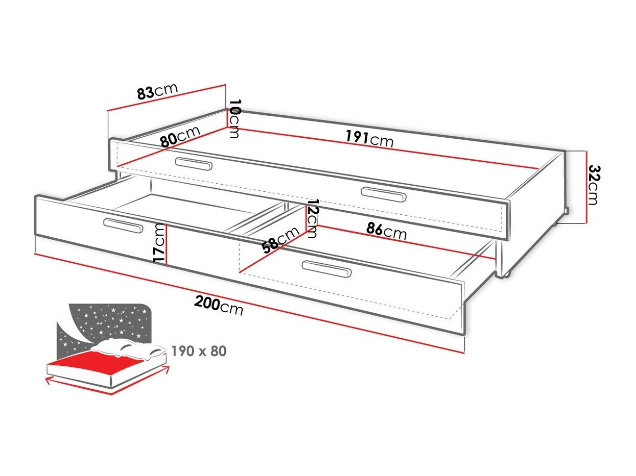 - 80 x 190 cm
