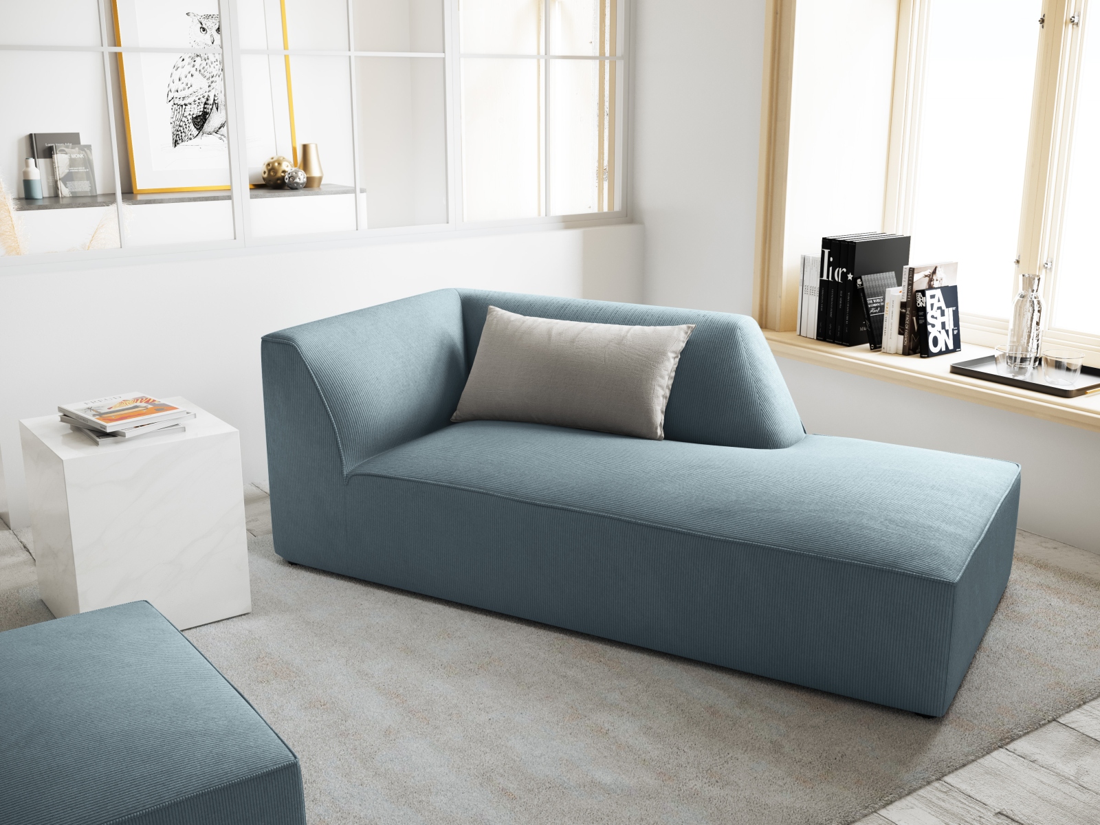 Mehka, mat tkanina z globokimi, vidnimi vdolbinami, ki ji dajejo edinstveno in izrazito teksturo. Površina je odporna proti hitremu vpijanju tekočin, zato lahko razlite tekočine enostavno obrišete s suho krpo. Tkanina je certificirana po tekstilnem standardu »Oeko-Tex«, kar potrjuje, da je brez alergenih snovi in je varna za vsakodnevno uporabo. Za čiščenje celotne površine tkanine priporočamo blaga čistilna sredstva, namenjena negi oblazinjenega pohištva.