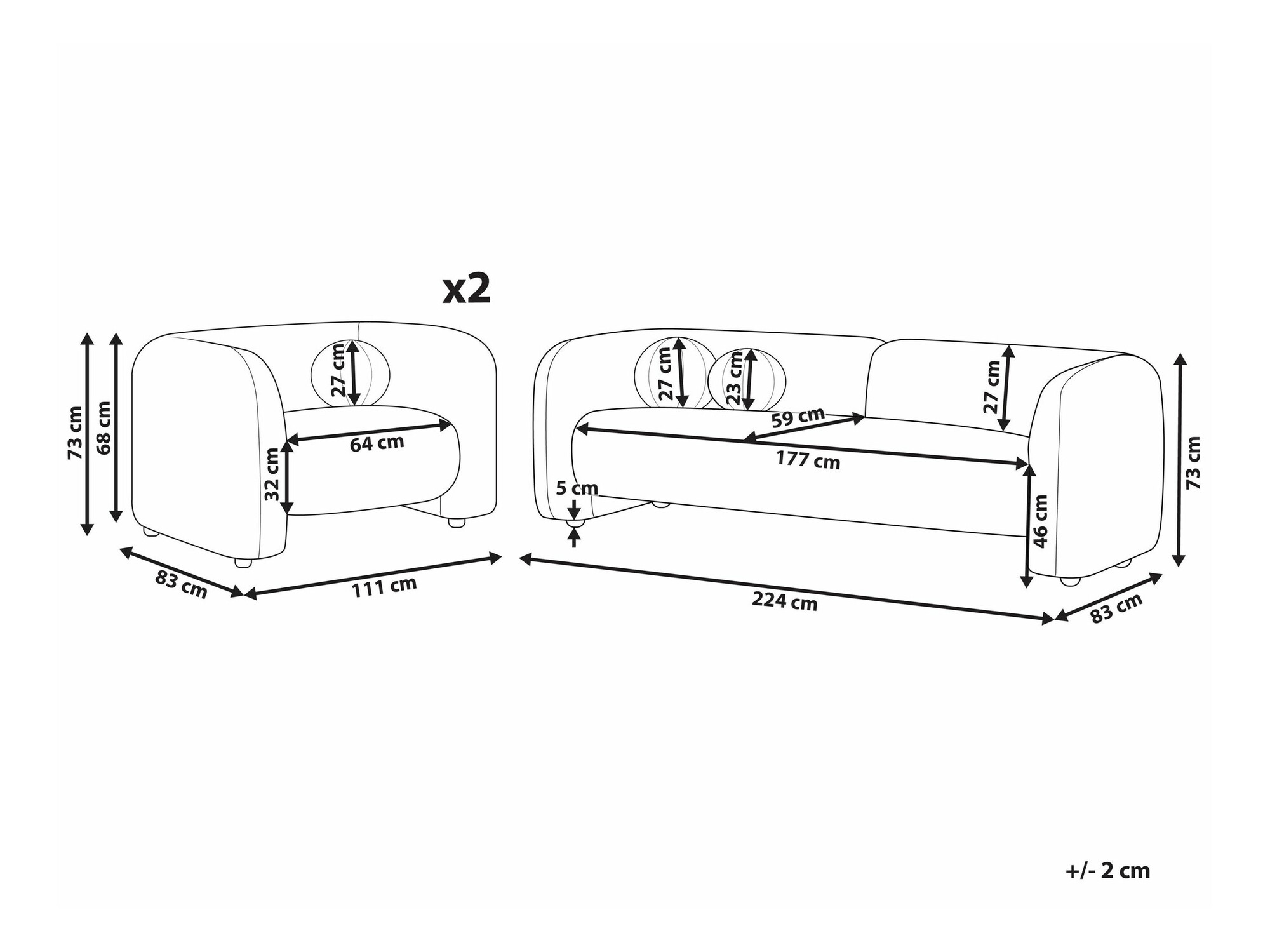 73 x 111 x 83 cm