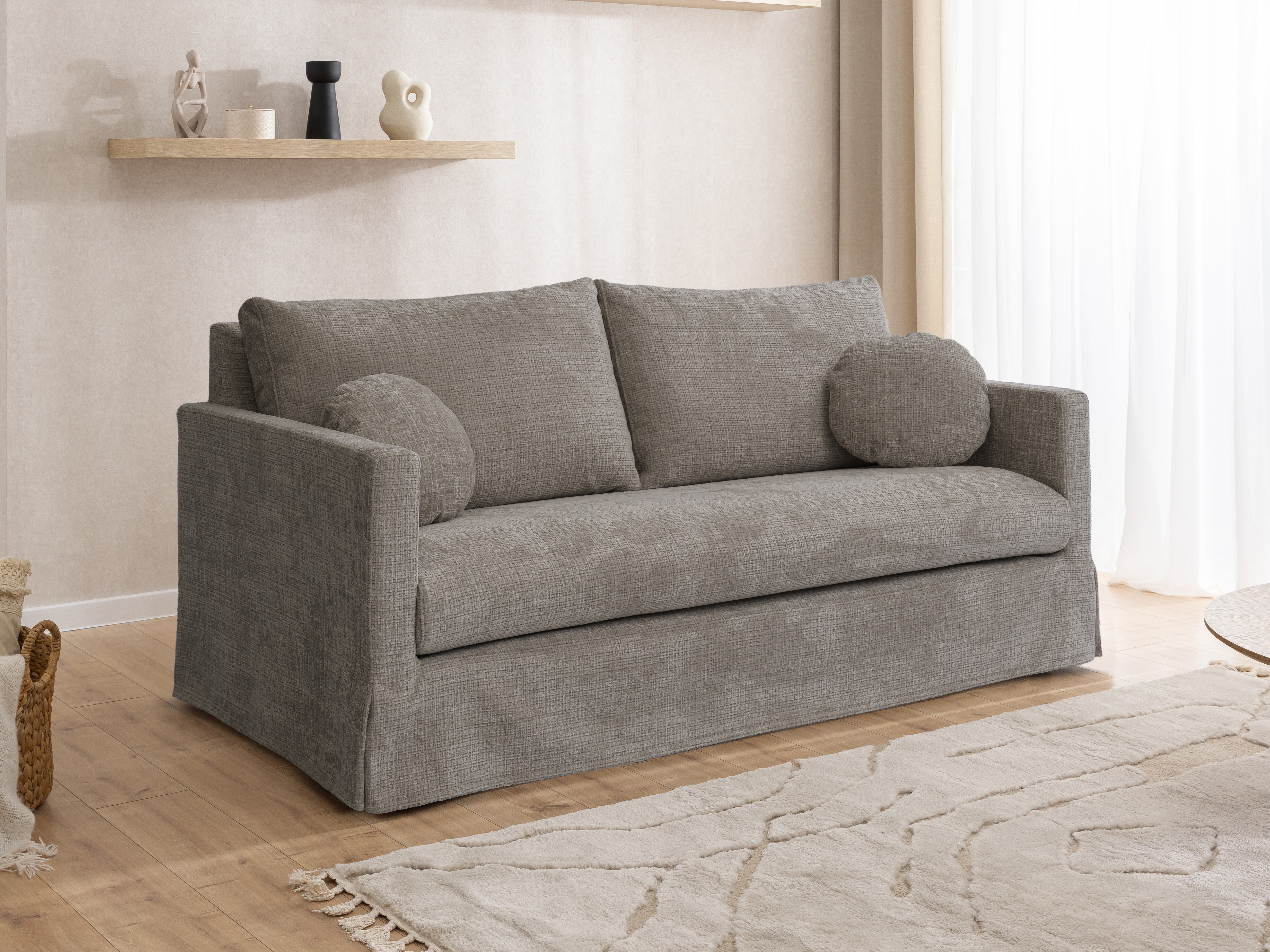 Mehka in nežna tkanina s teksturirano površino in subtilnim bisernim leskom. Površina blaga je žametna in spreminja odtenek glede na osvetlitev. Tkanina ima certifikat »Reach«, ki potrjuje, da ne vsebuje škodljivih snovi. Površino tkanine je priporočljivo vzdrževati samo z nežnimi čistilnimi sredstvi, posebej zasnovanimi za oblazinjeno pohištvo.