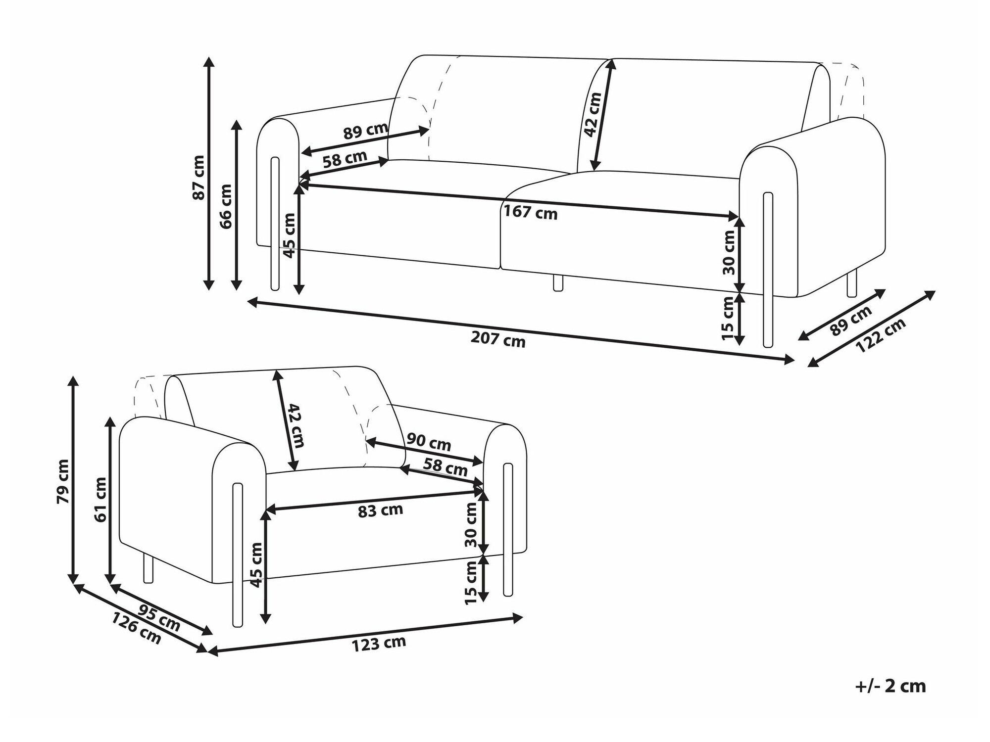 87 x 207 x 89 / 122 cm