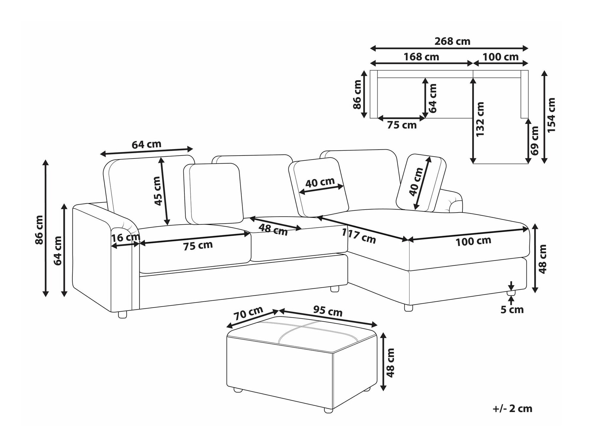 86 x 268 x 154 cm