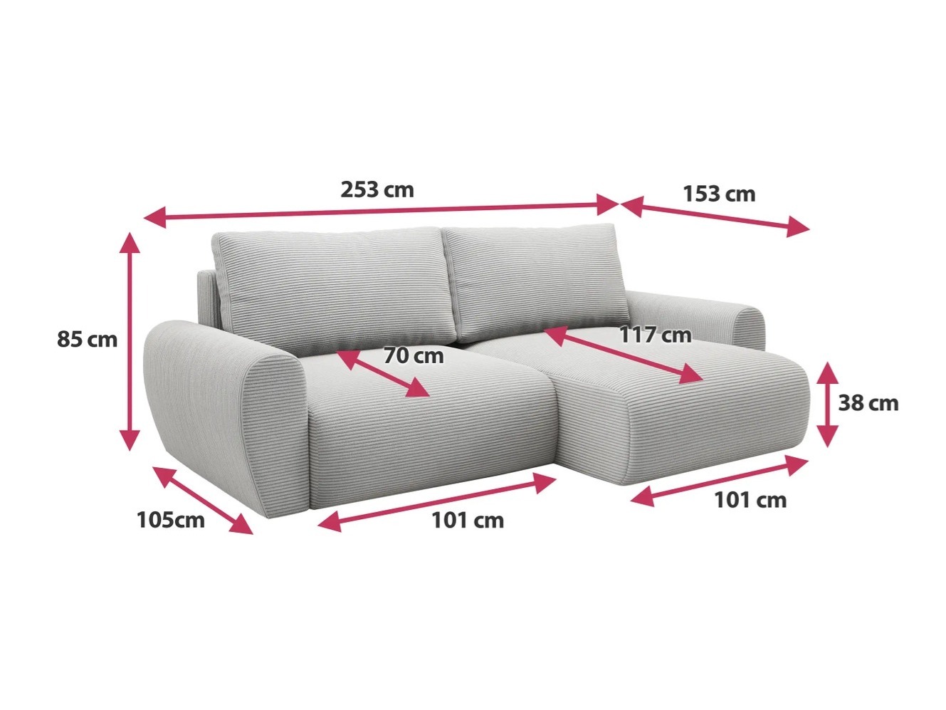 Mehka tkanina z globokimi brazdami na površini, ki ji dajejo značilen videz. Tkanina je odporna na luščenje in UV-žarke. Zahvaljujoč tem lastnostim bo pohištvo s to tkanino ohranilo svoj prvotni videz več let. Celotno površino lahko čistite z blagimi sredstvi za nego oblazinjenega pohištva. Mokro pranje ali beljenje ni dovoljeno.