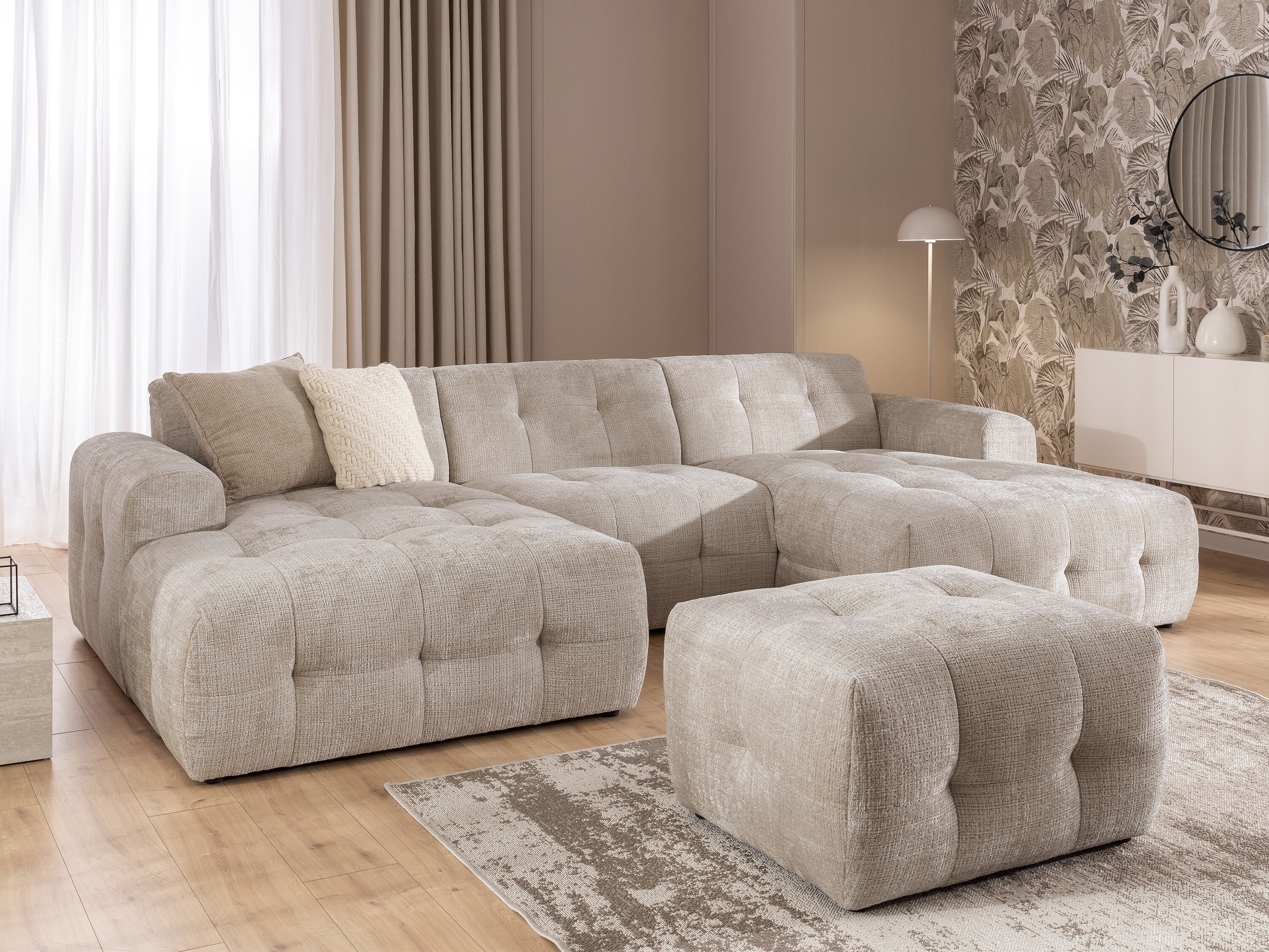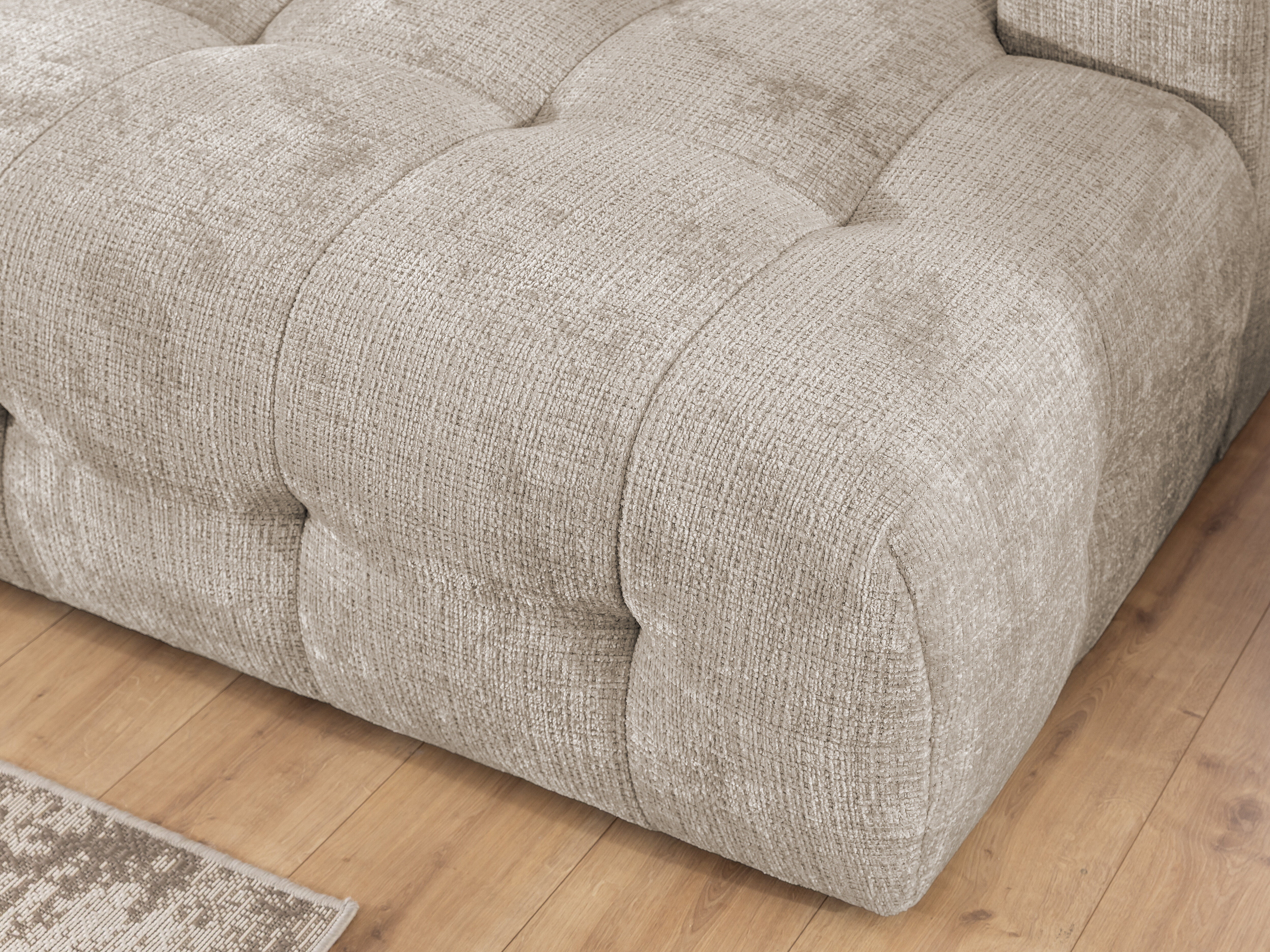Mehka in nežna tkanina s teksturirano površino in subtilnim bisernim leskom. Površina blaga je žametna in spreminja odtenek glede na osvetlitev. Tkanina ima certifikat »Reach«, ki potrjuje, da ne vsebuje škodljivih snovi. Površino tkanine je priporočljivo vzdrževati samo z nežnimi čistilnimi sredstvi, posebej zasnovanimi za oblazinjeno pohištvo.