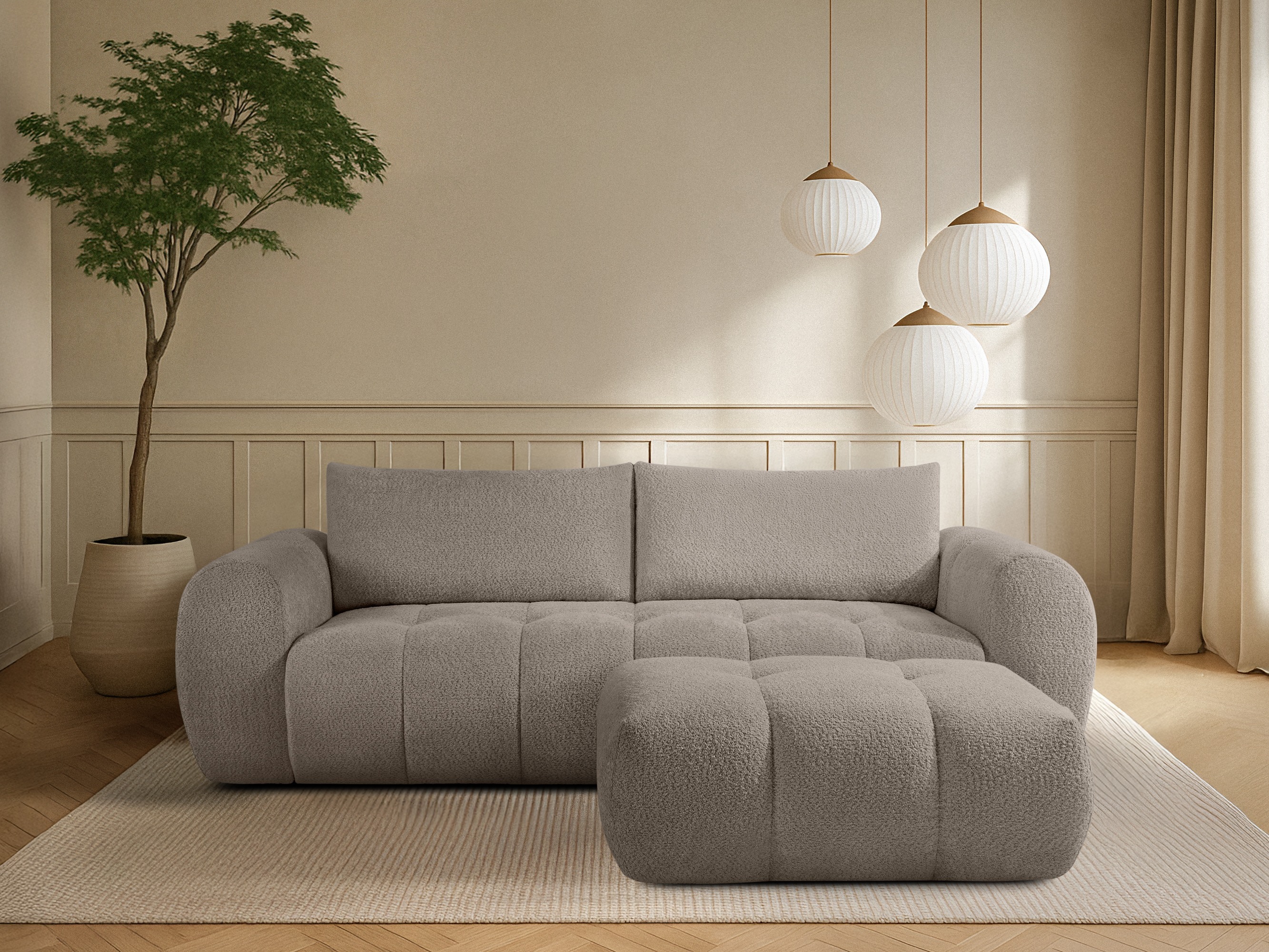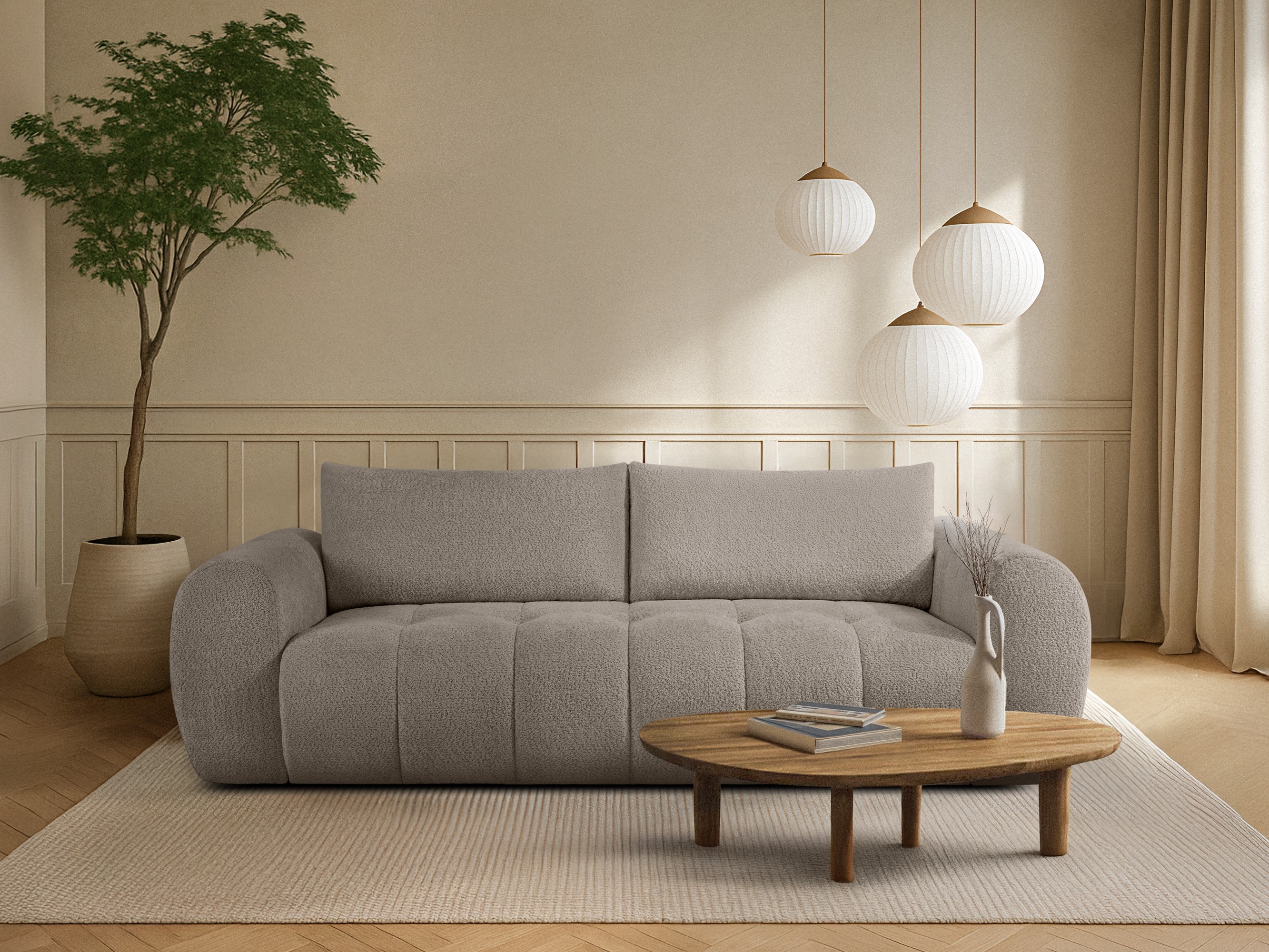 Mehka tkanina, primerna tako za skandinavske kot sodobne interierje. Ne vsebuje alergenih snovi. Priporočamo uporabo blagih čistil za oblazinjeno pohištvo.