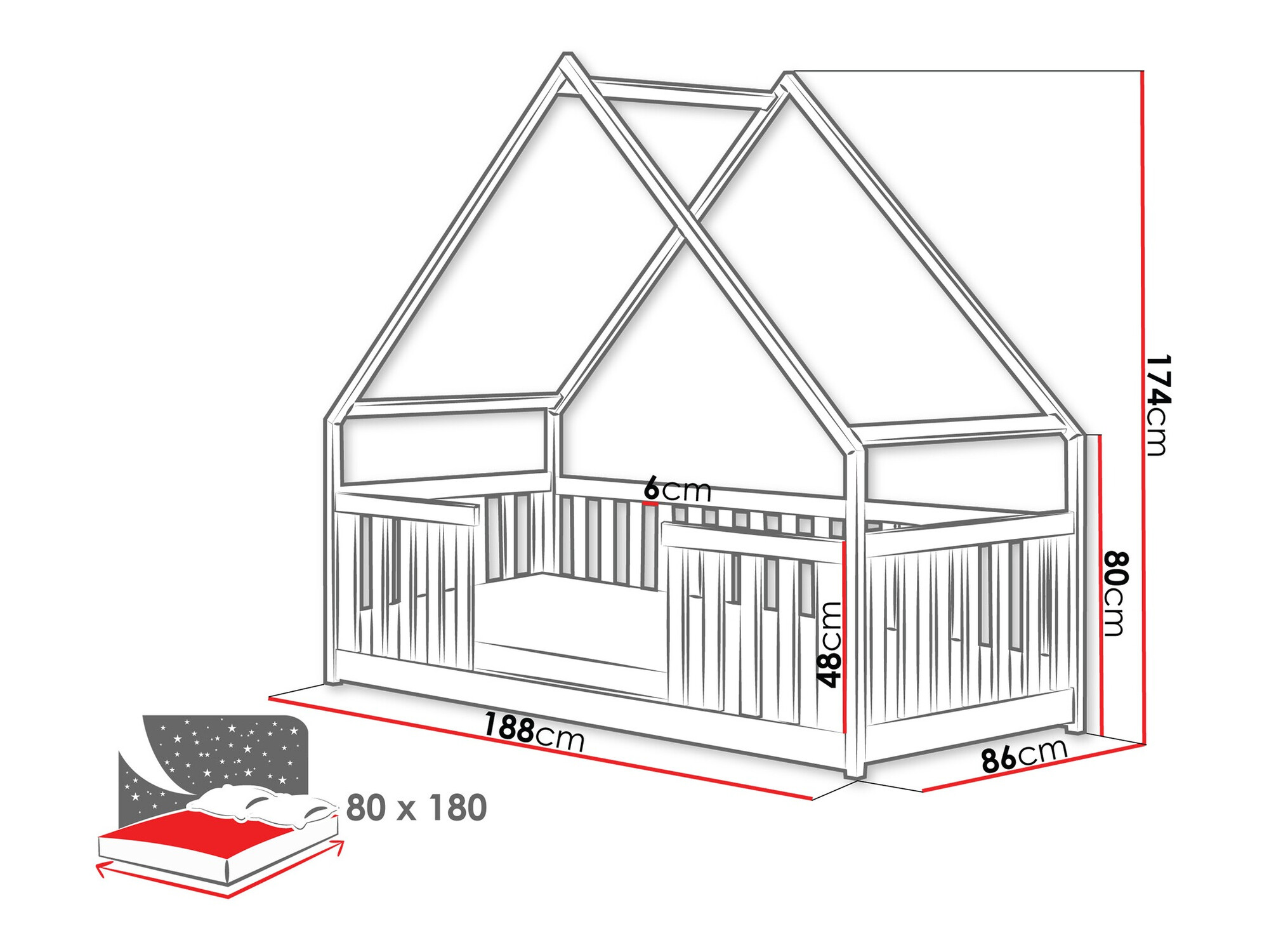- 80 x 180 cm