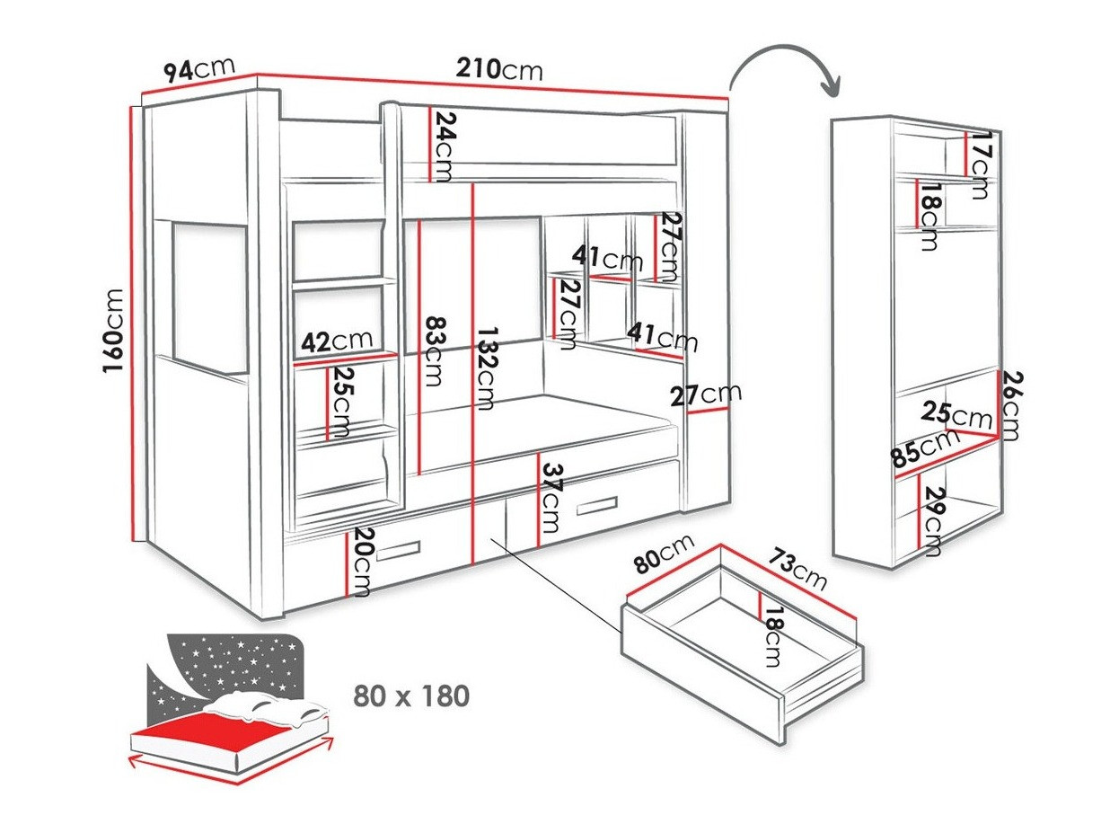 - 80 x 180 cm