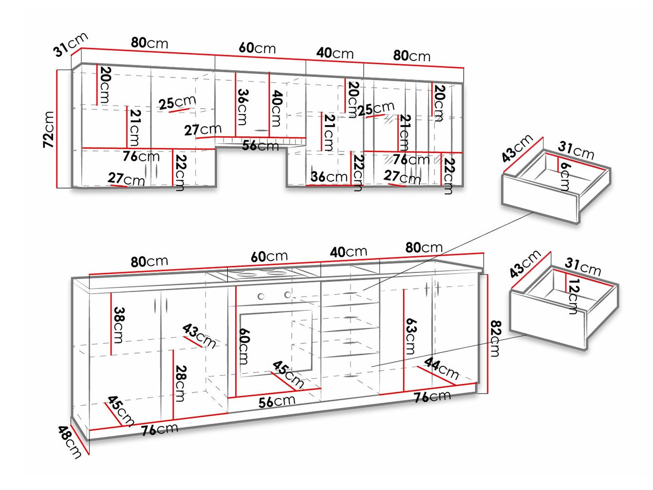 Globina spodnjih omaric: