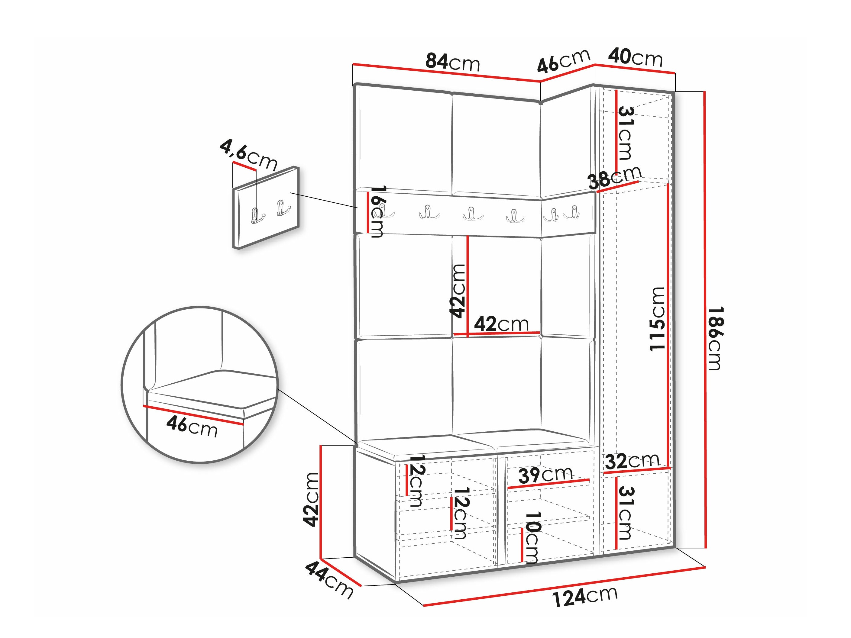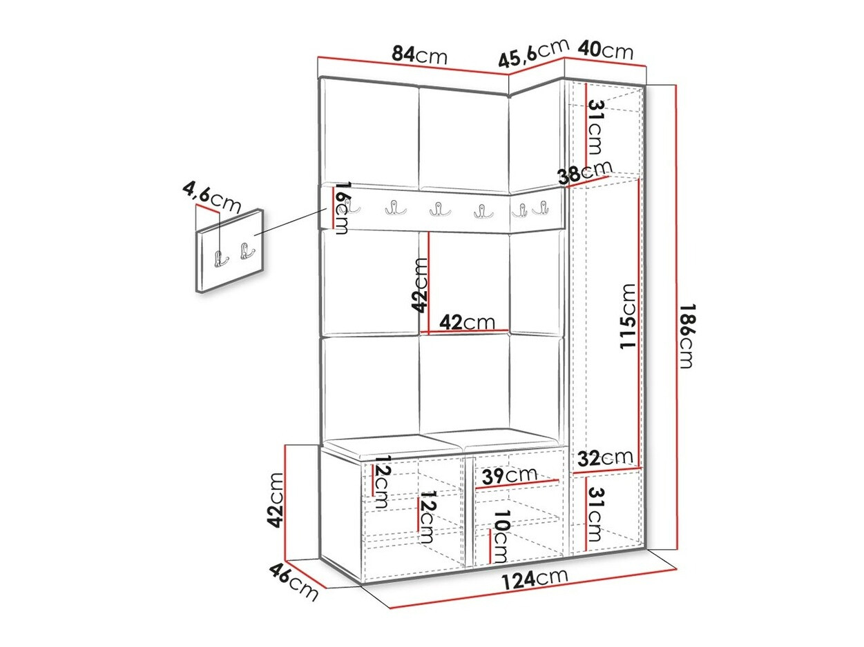 Lepa in enostavno sestavljiva garnitura, ki ne zavzame veliko prostora na hodniku in se popolnoma prilega