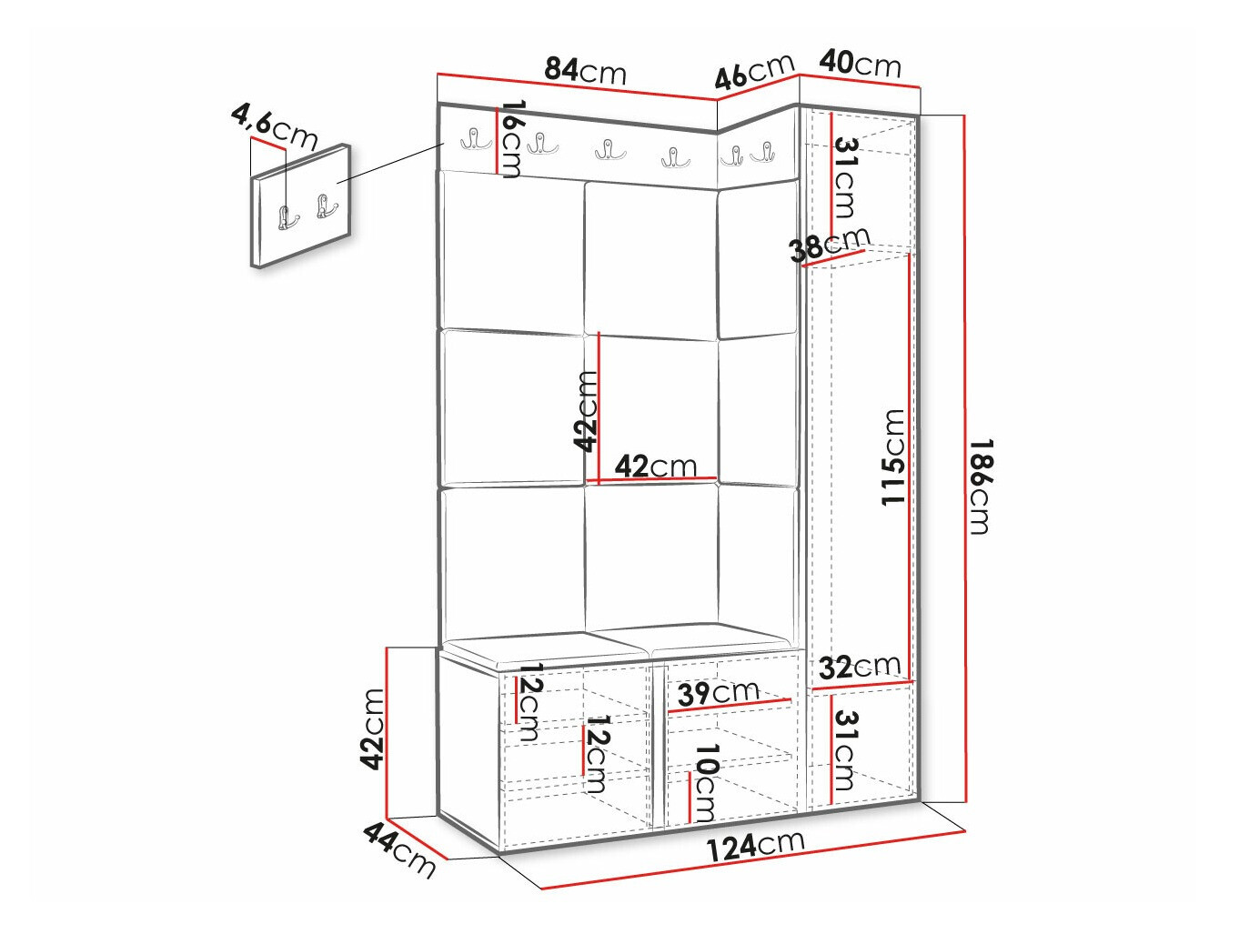 186 x 40 x 46 cm