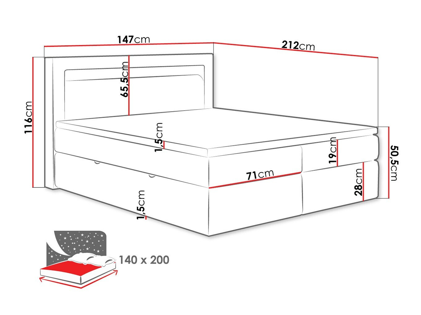 - 140 x 200 cm