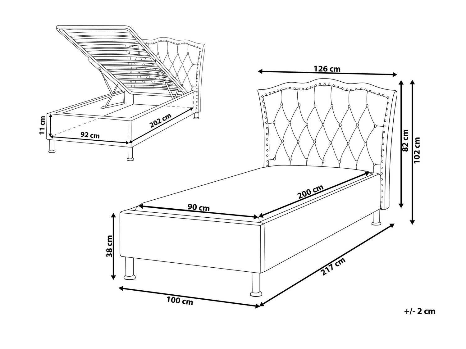 - 90 x 200 cm