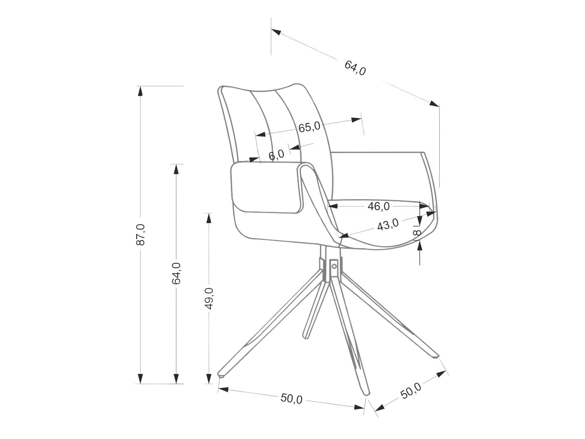 Višina naslonjala za roke: