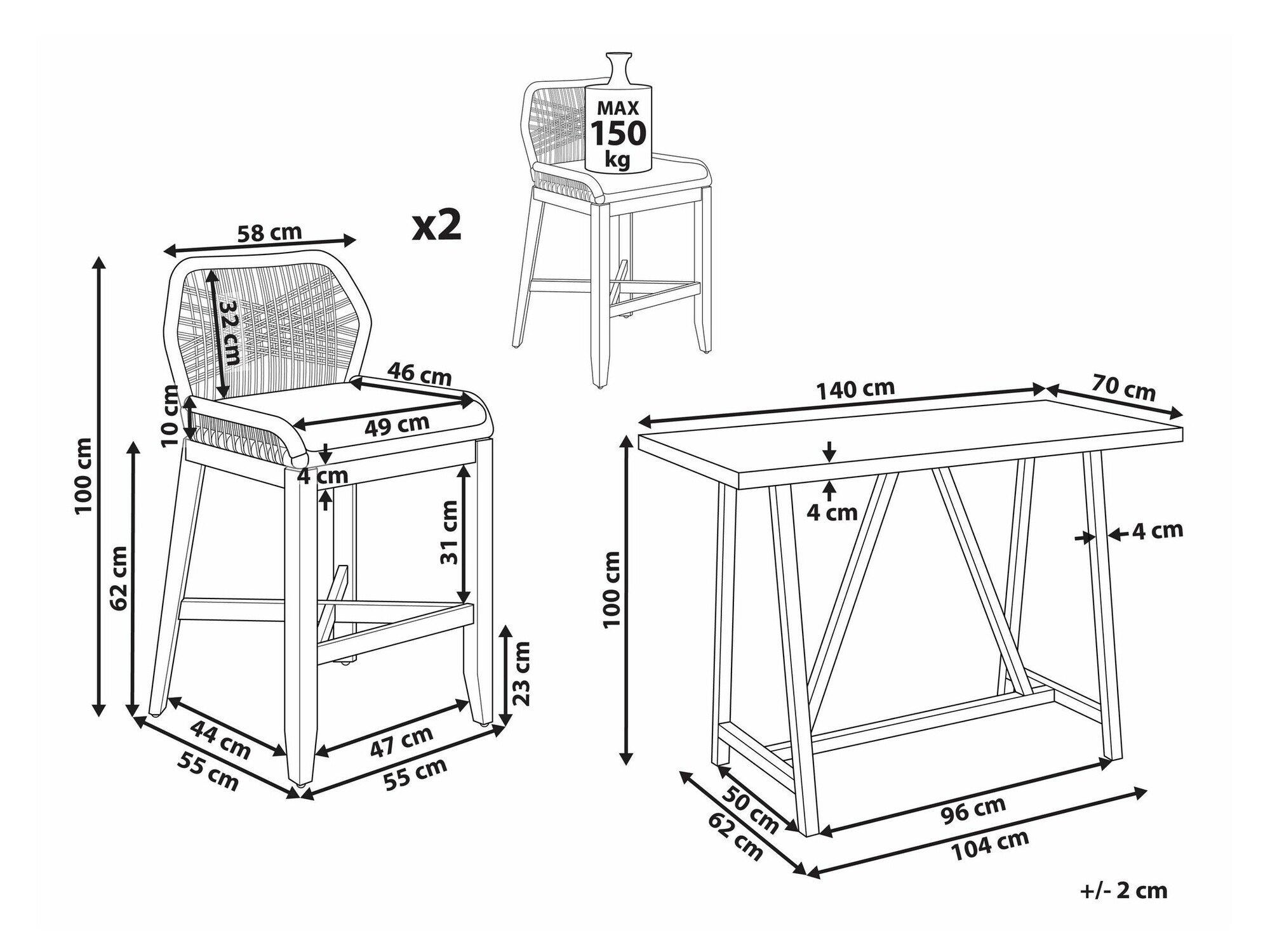 100 x 70 x 140 cm