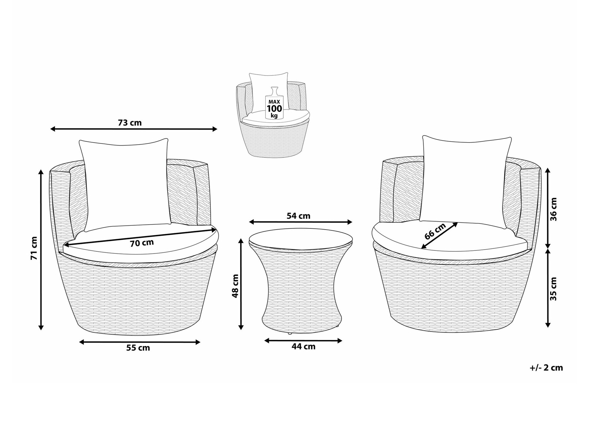 71 x 70 x 73 cm